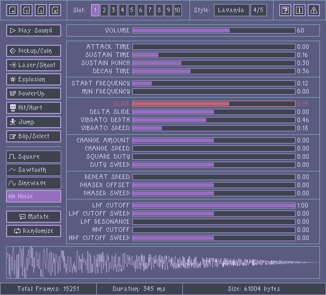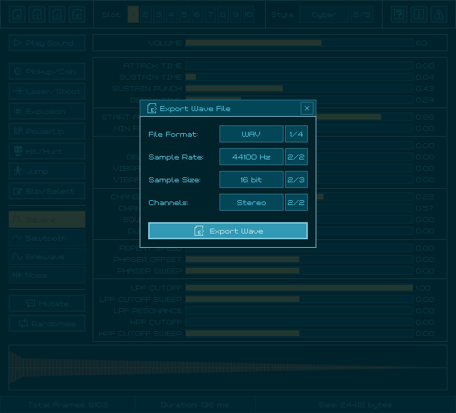 ADDED: Up to 10 sound slots availableADDED: Automatic HighDPI detection and scaling x2ADDED: New UI default style: GenesisREVIEWED: UI design, longer slidersREVIEWED: Available UI stylesREVIEWED: Welcome windowUPDATED: Using raylib 5.6-dev and raygui 4.5-devUPDATED: Using tinyfiledialogs 3.20